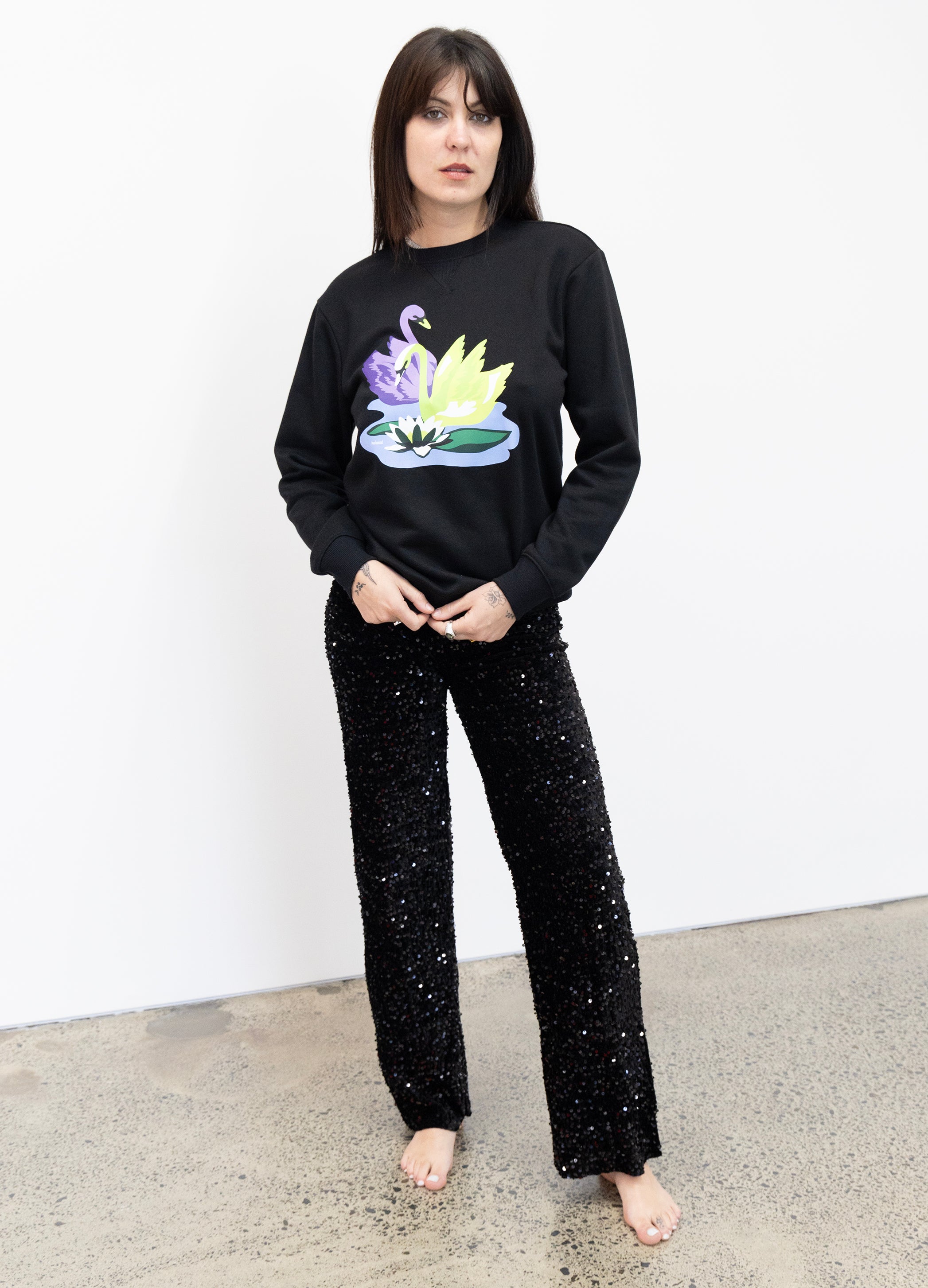 Cotton mix fleece sweetshirt with swan print. Regular fit.