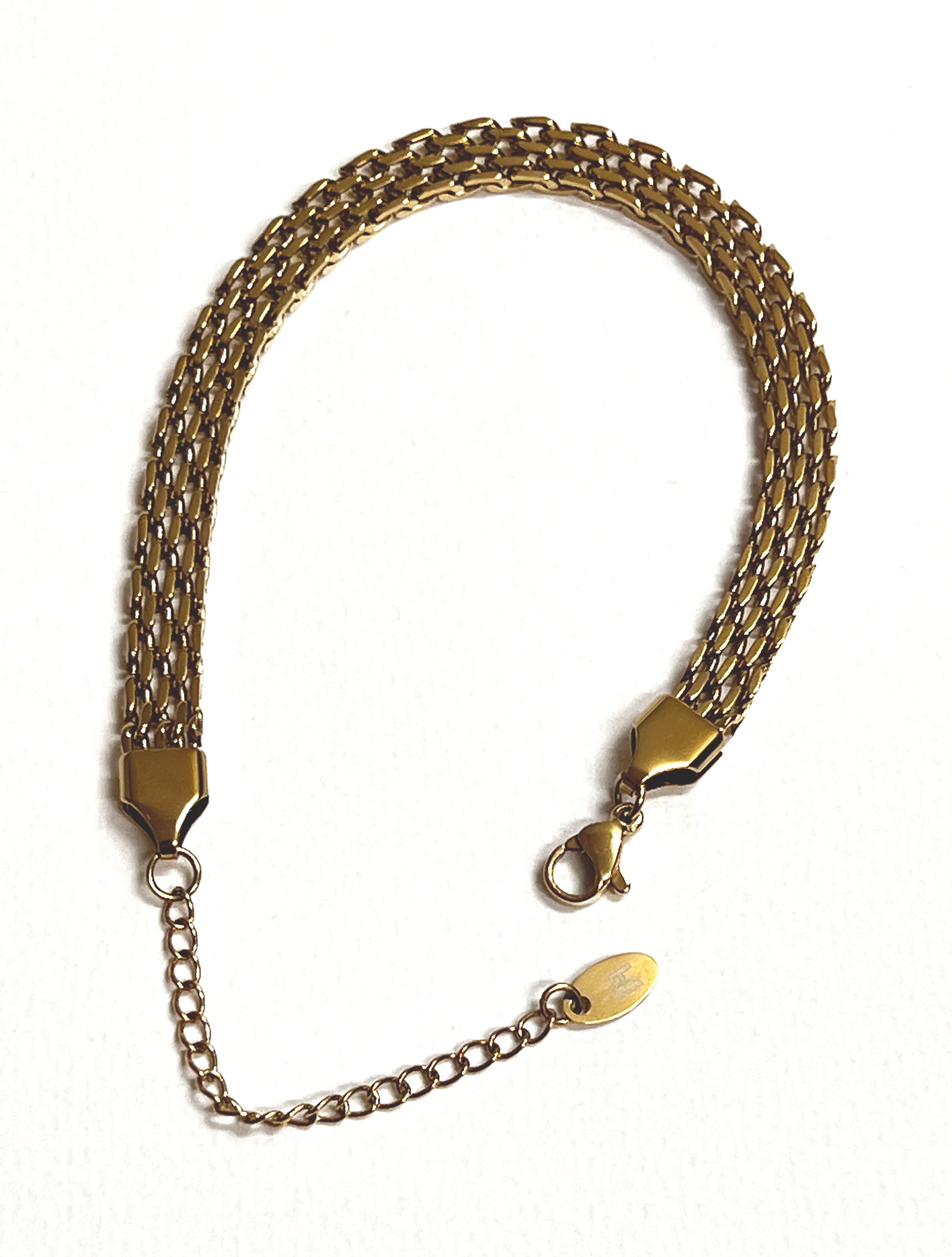 This elegant liquid basket link chain bracelet is made up of Stainless steal and plated in 14k gold. Also has a matching necklace.