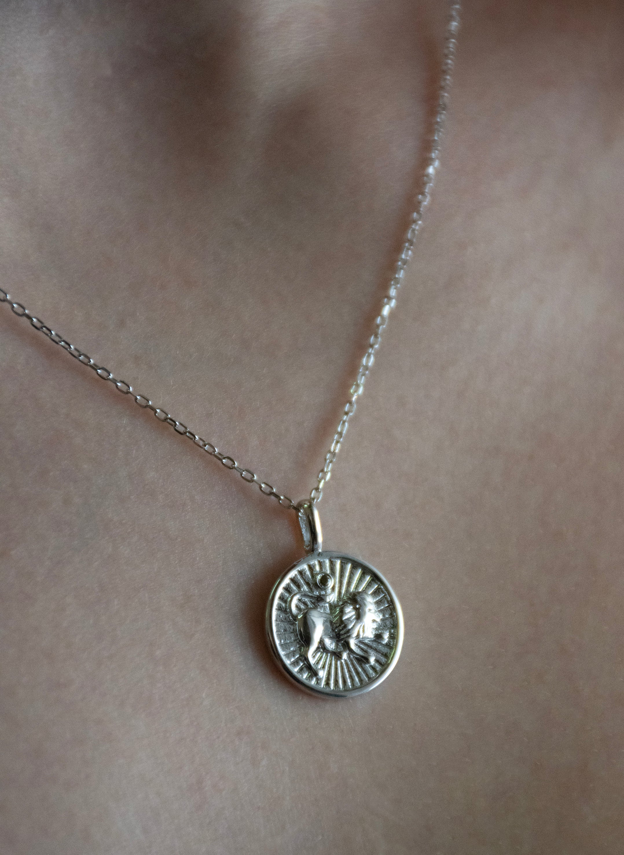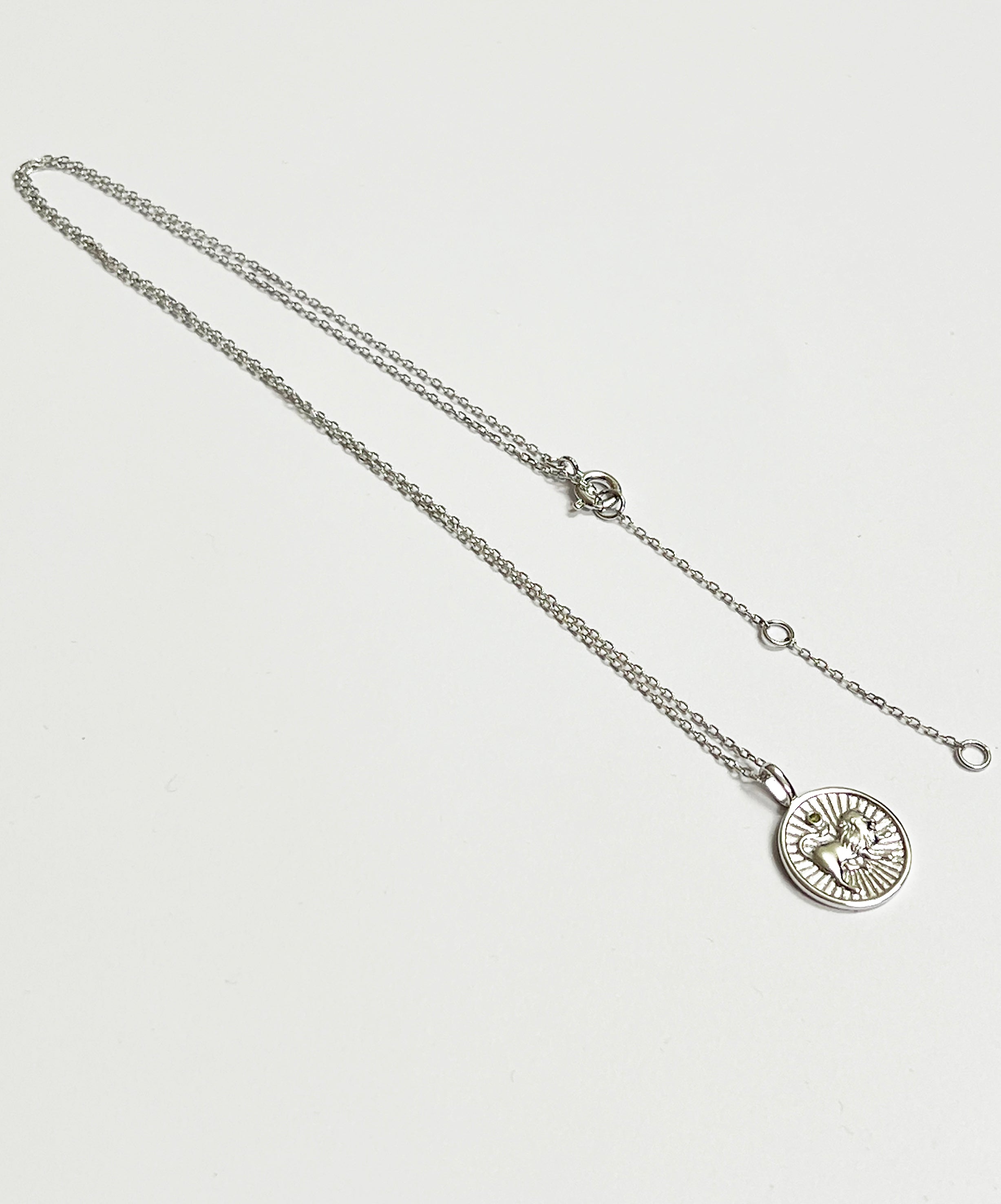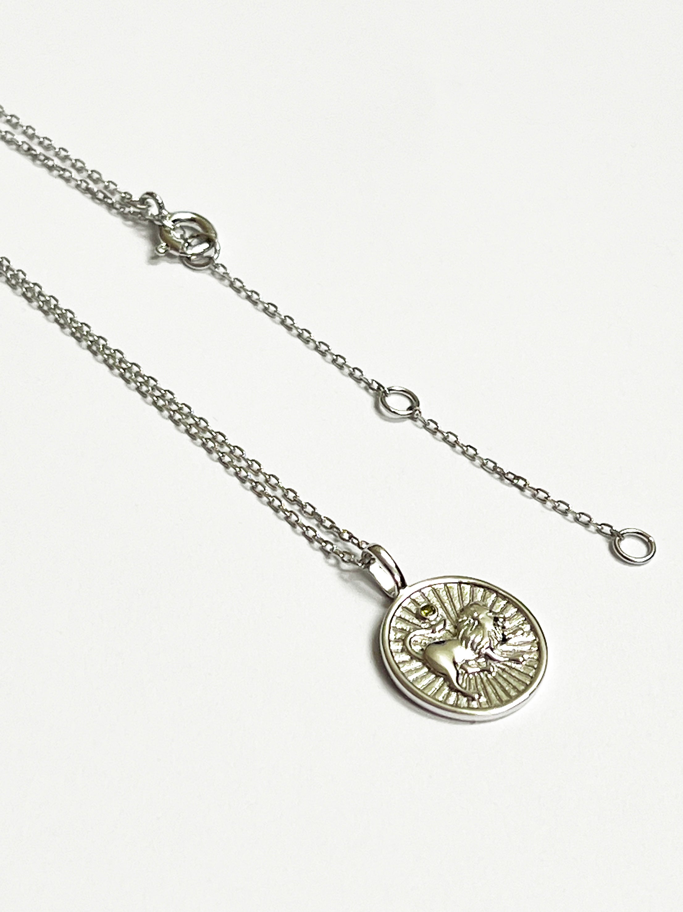The lion and sunray pendant with tiny peridot birth stone makes for an elegant Leo star sign pendant for both men and woman.