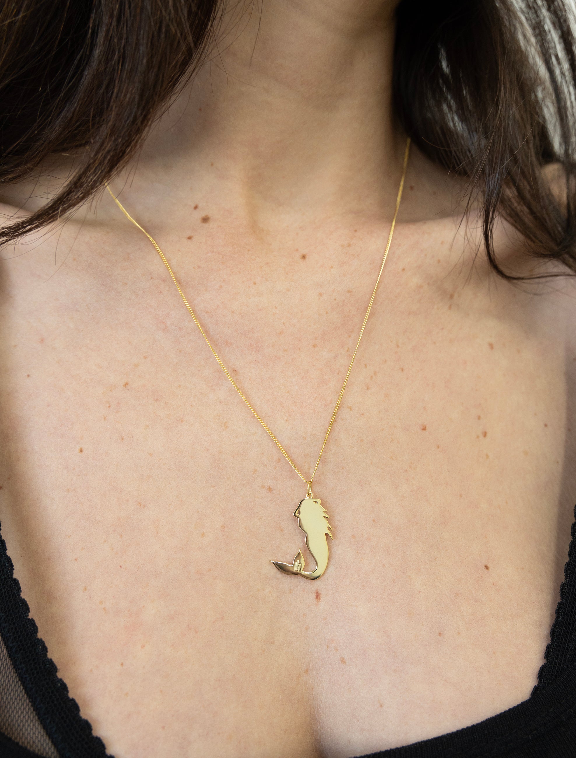 Mermaid Siren "Tattoo Me" pendant set in Sterling (925) Silver and 14k gold plate on a adjustable fine gold chain.