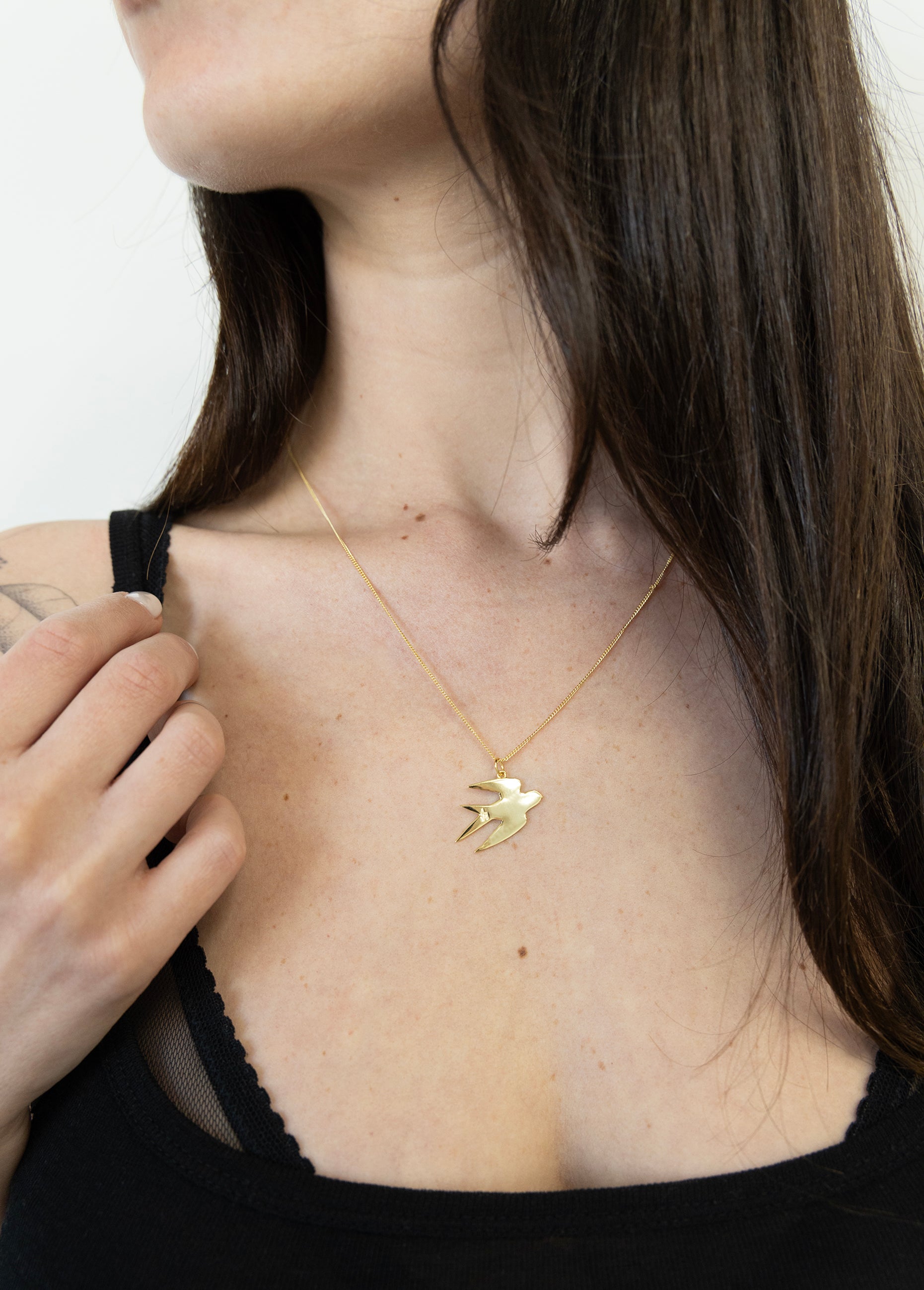 The first to feature in the "Tattoo Me" collection the welcome swallow set in Sterling (925) Silver and 14k gold plate.