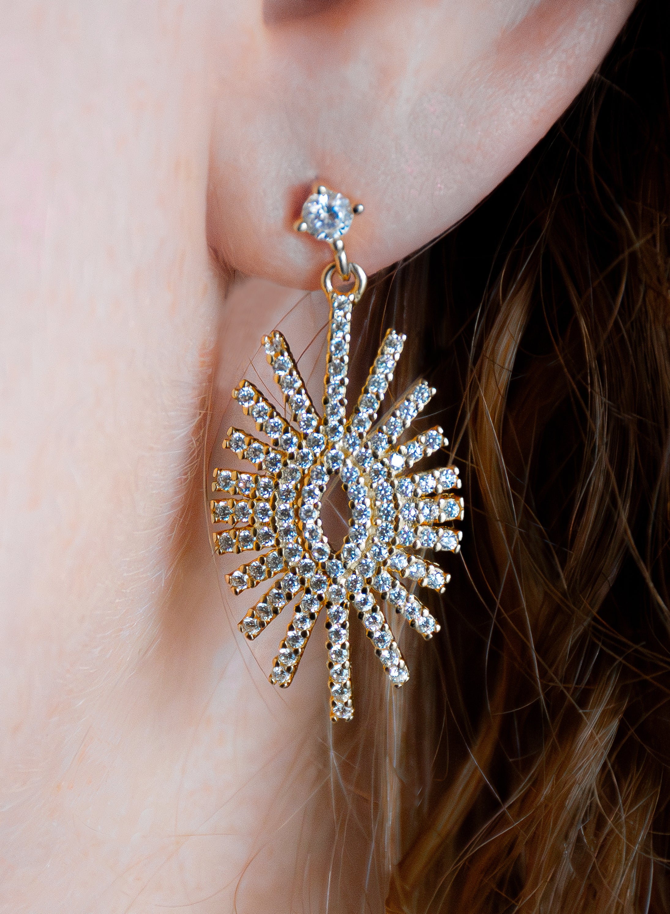 A majestical sheild with ray beams of clear facet cut crystals set into Sterling Silver (925) and 9k gold plate evoking the sun goddess Ra.