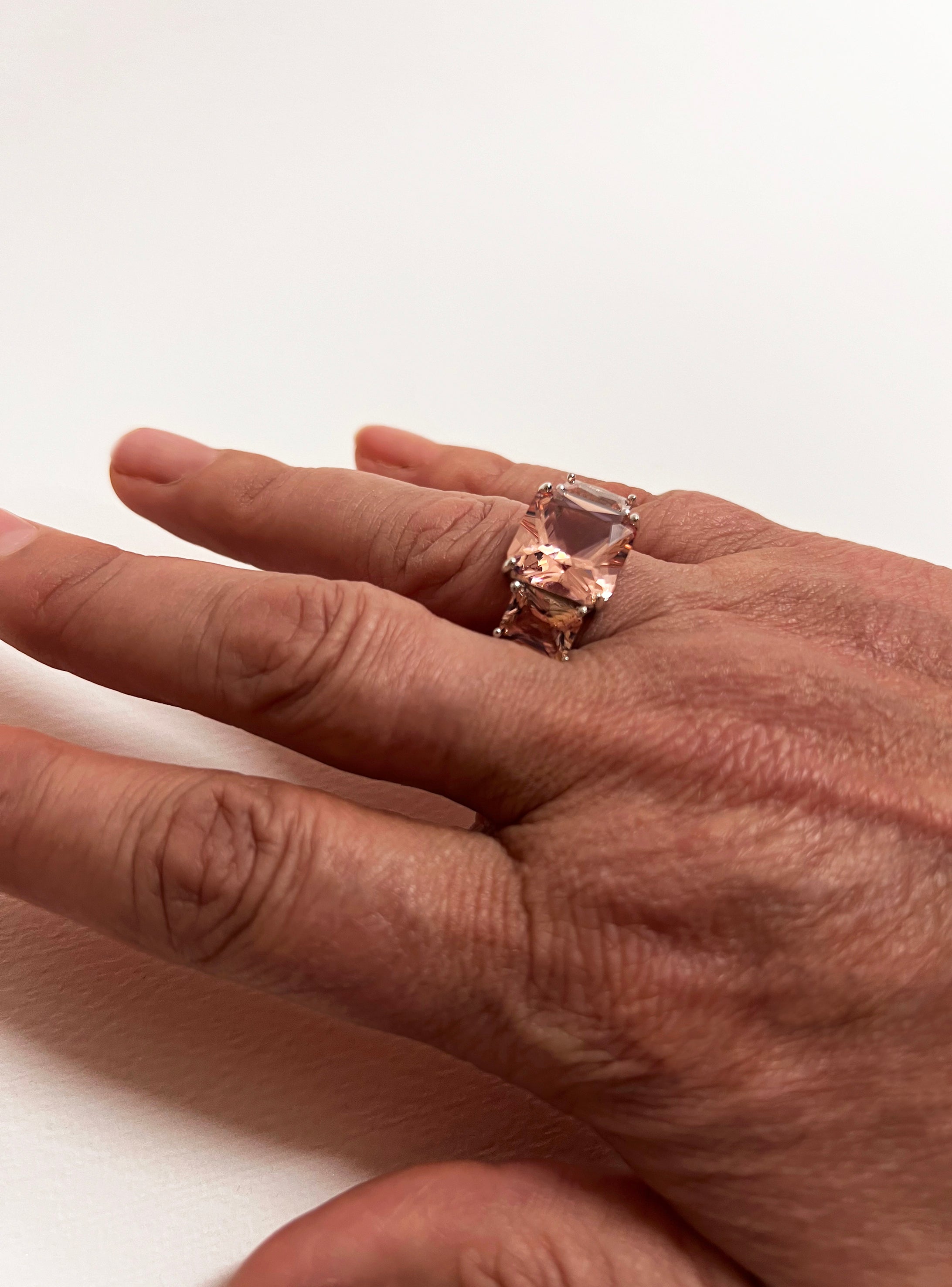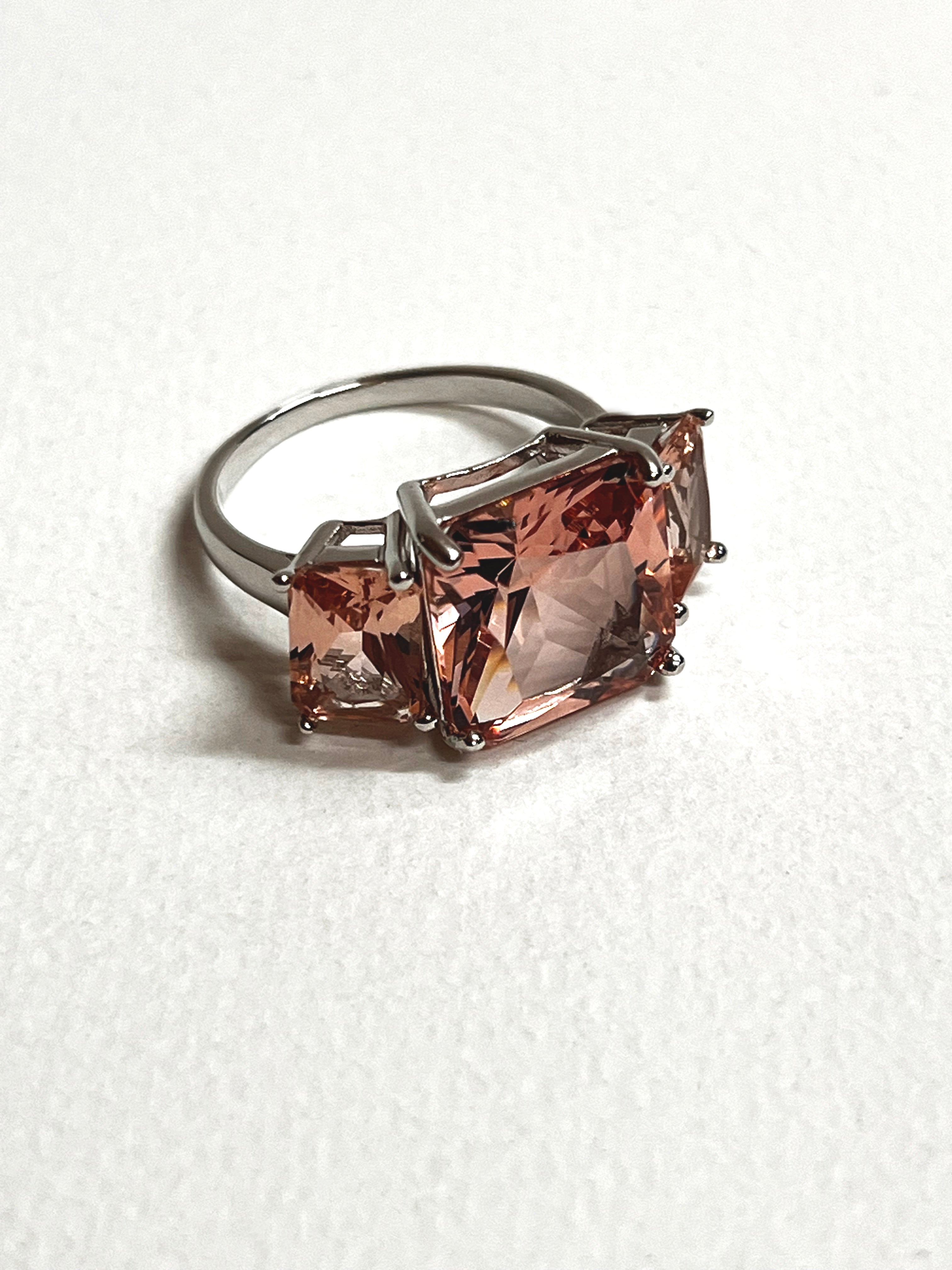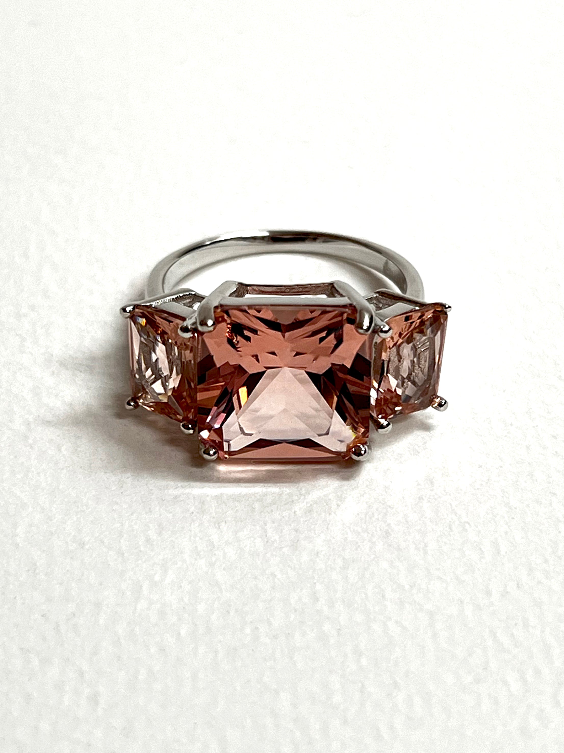 Our Ave cocktail rings get a new addition, champagne pink radiant facet cut Tourmaline Cubic Zirconia. Just simply stunning, claw set in Sterling Silver.