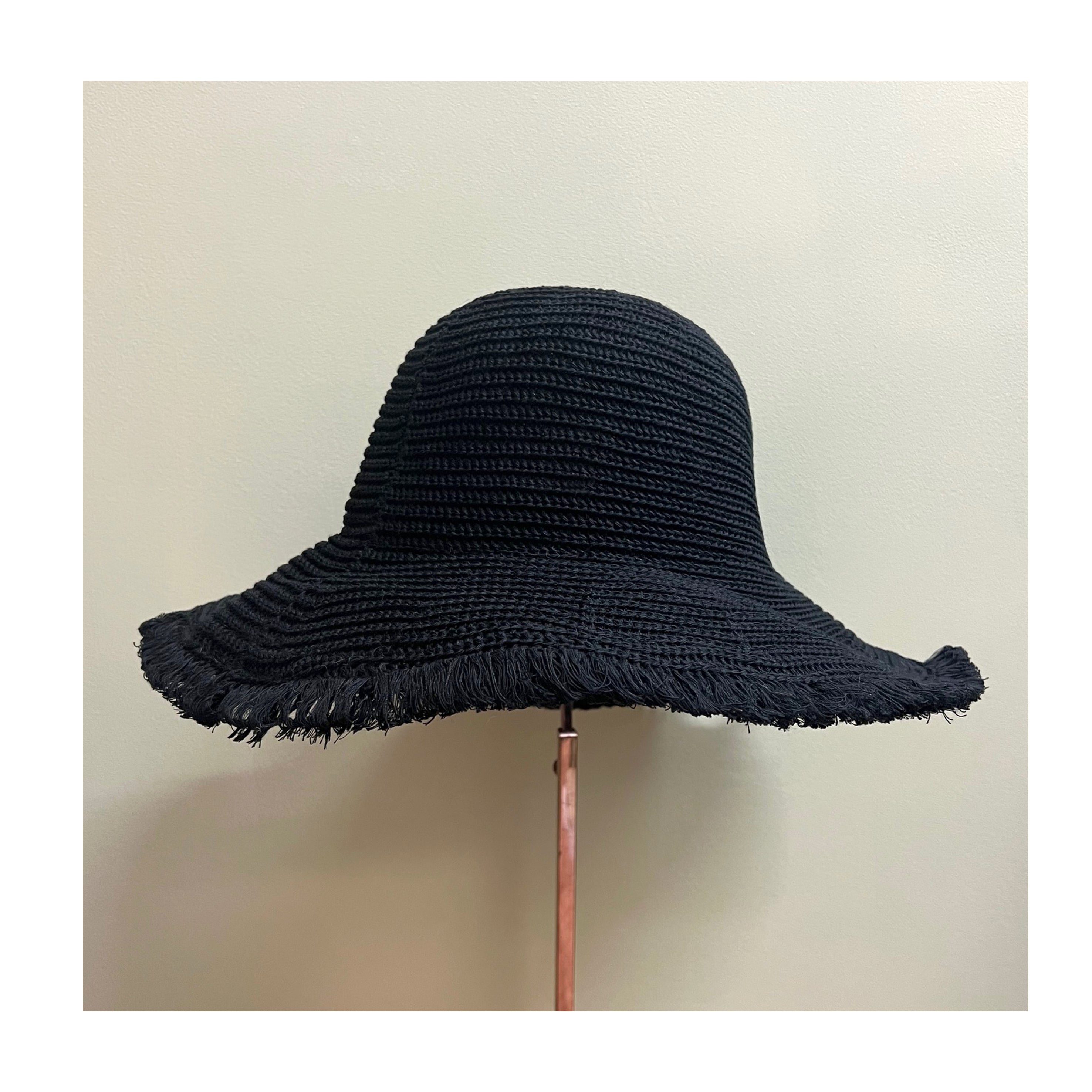 This 100% cotton knit sun hat has a standard brim with built in malible wire to shape and mis-shape different looks to suit. Colour Black Noir.