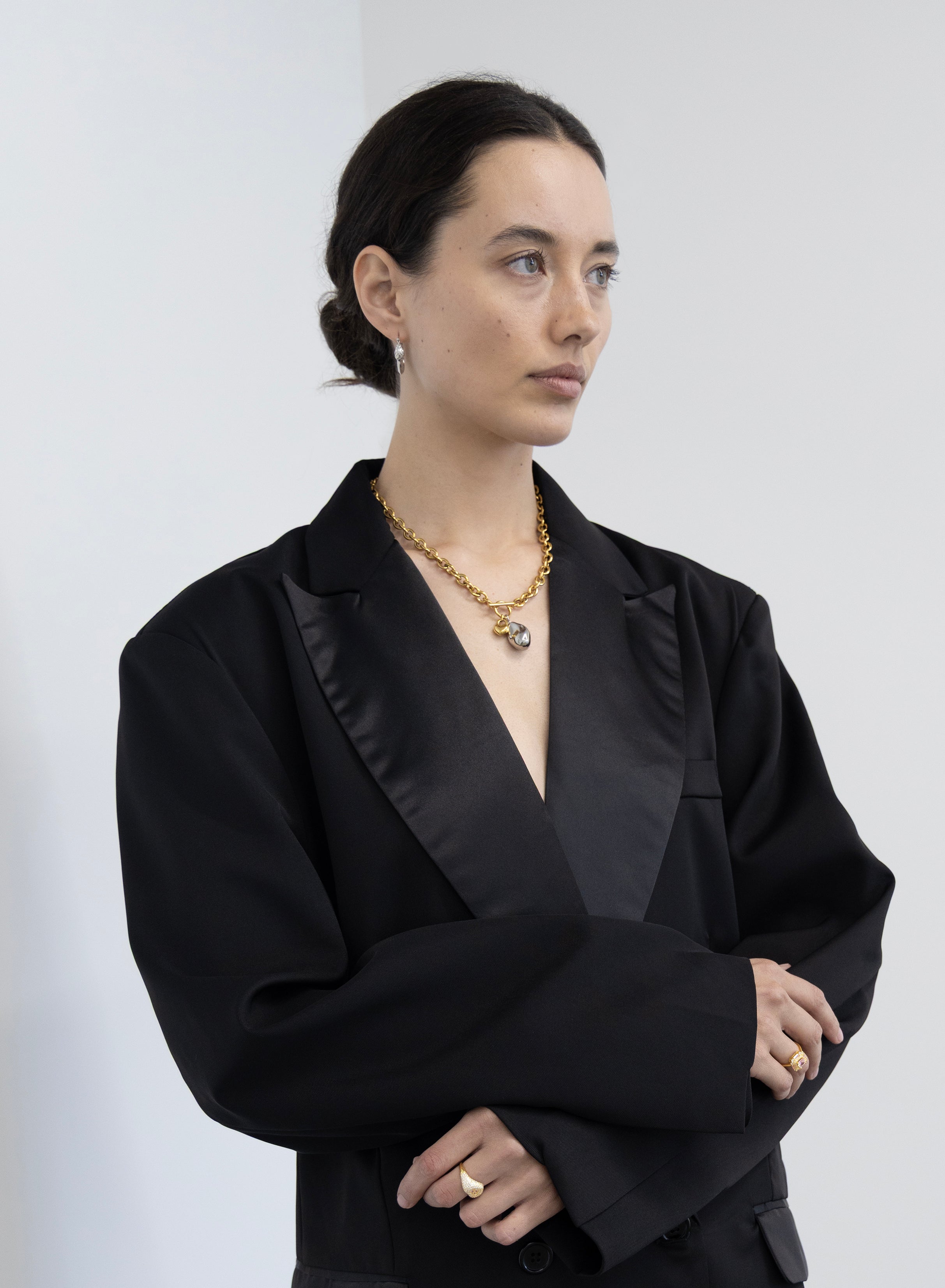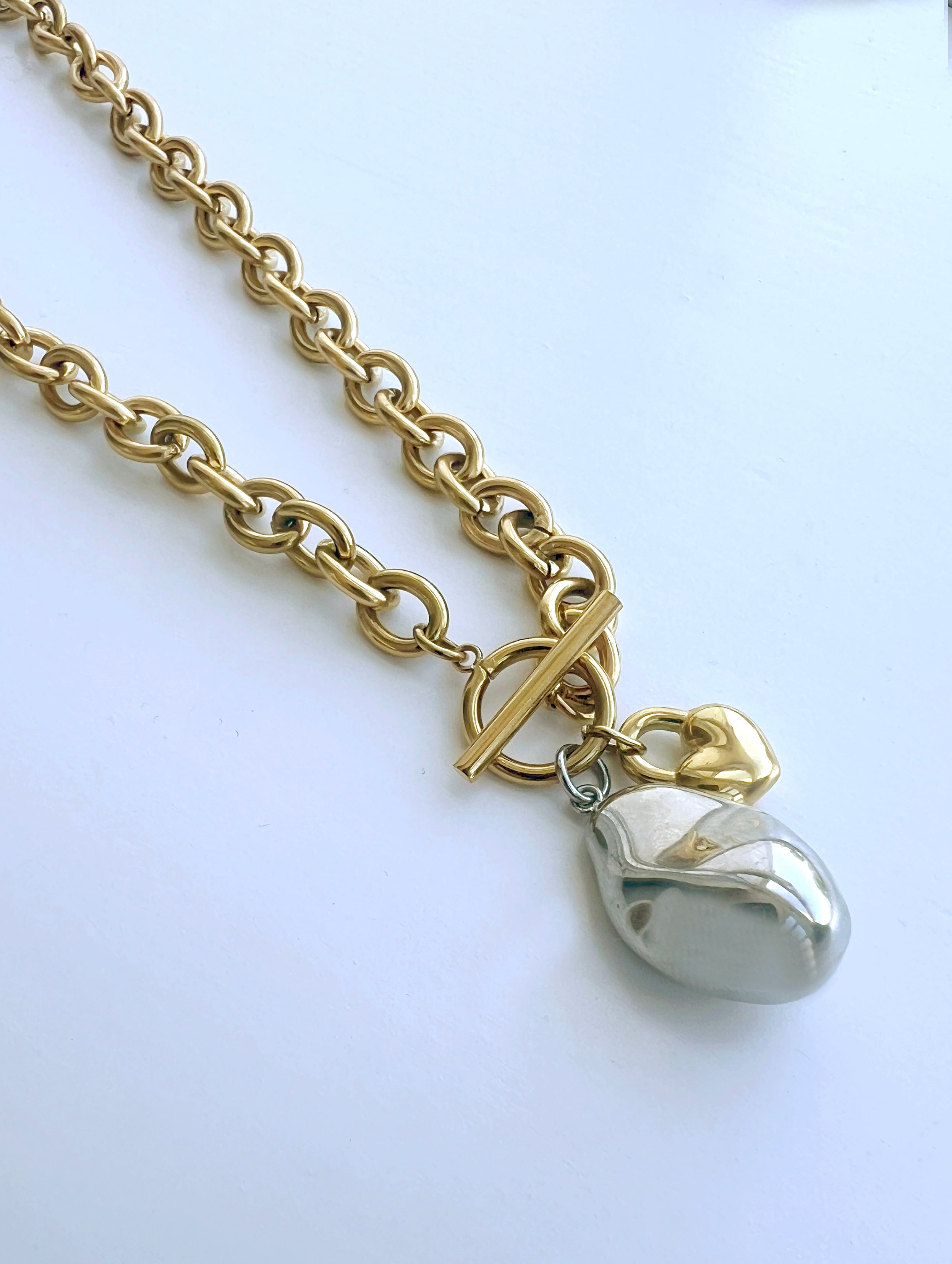 A new addition to our costume jewllery range, this stainless steal pearl and heart locket fob pendant is a modern piece plated in gold and silver plate. Effortless elegant teamed with a tuxedo jacket or tee & jeans.