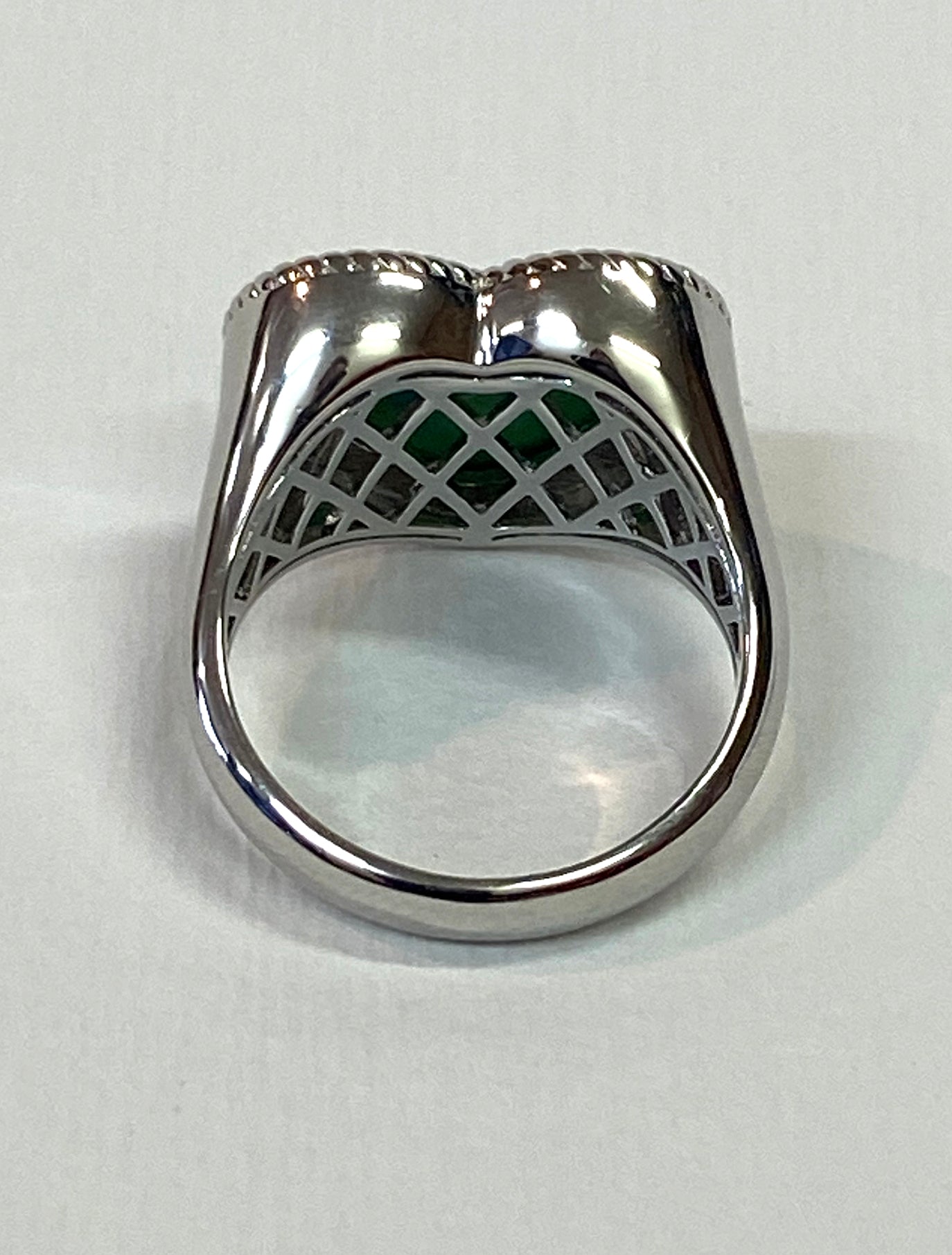 A created Green Agate with hints of lemon and lime set in sterling (925) silver combine to make a magical looking ring.